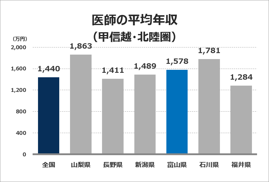 富山医療圏は、10万人あたりの医師数が全国平均を上回っています。